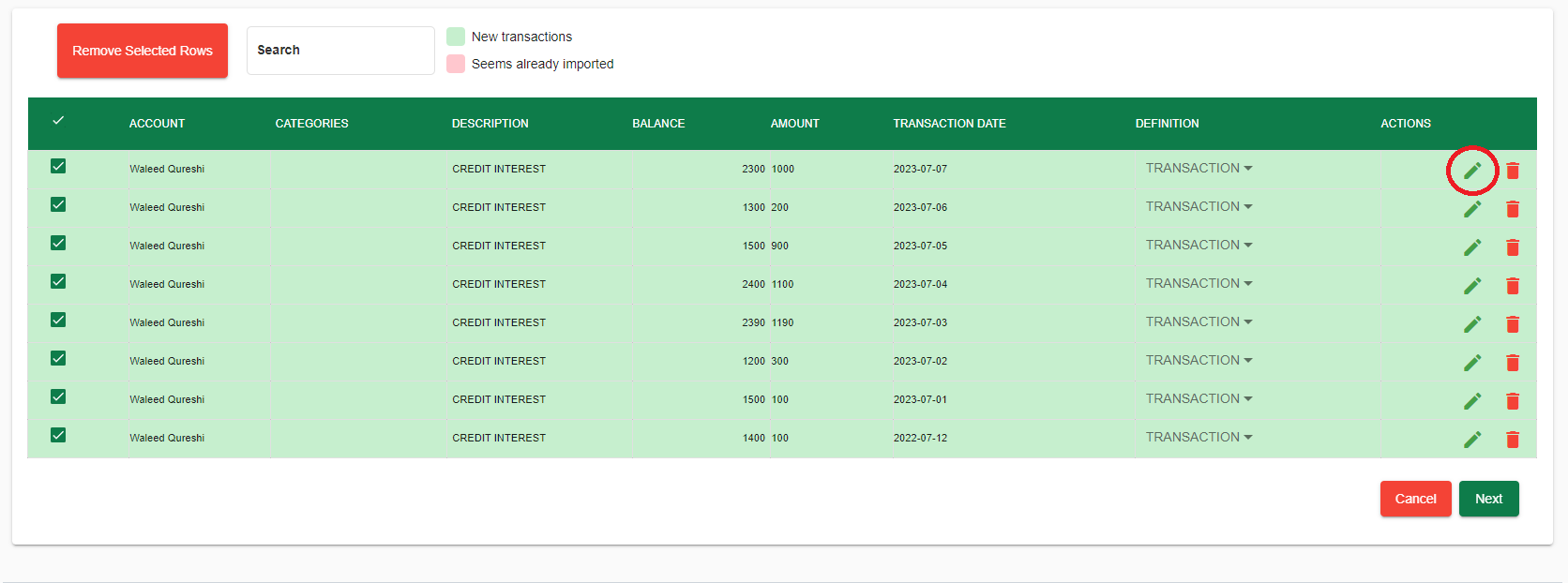 You also have the option to add a category to each of your transactions by selecting the pencil icon.